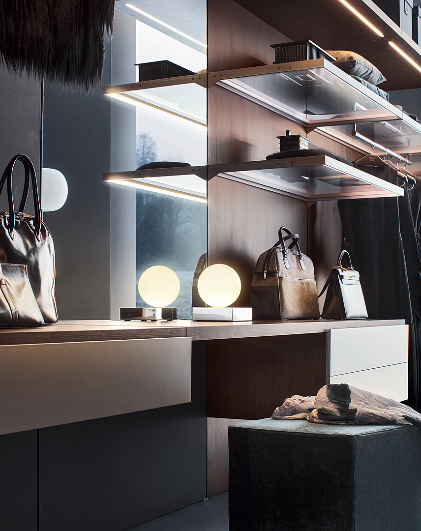 Every day of our lives – as well as on special occasions – we repeat the ritual of choosing what clothes to wear and which shoes and accessories to use with them. Anteprima has been designed to accompany and inspire our choices. Practical, fascinating elements allow unsurpassed freedom of arrangement and can be customized in a wide range of finishes to meet the most demanding requests.