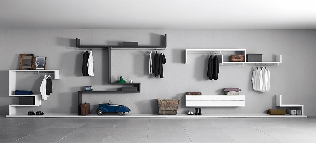 A new way of thinking about walk-in closets, creativity that runs through the panels and shelves made-to-measure to create functional yet playful spaces and shapes. Wall-mounted or fixed on a panel. A chest of drawers on wheels or wall mounted, a choice between the various Pianca collections, complete customization of the compositions. The tailor made dimensions allow for the creation of any composition.