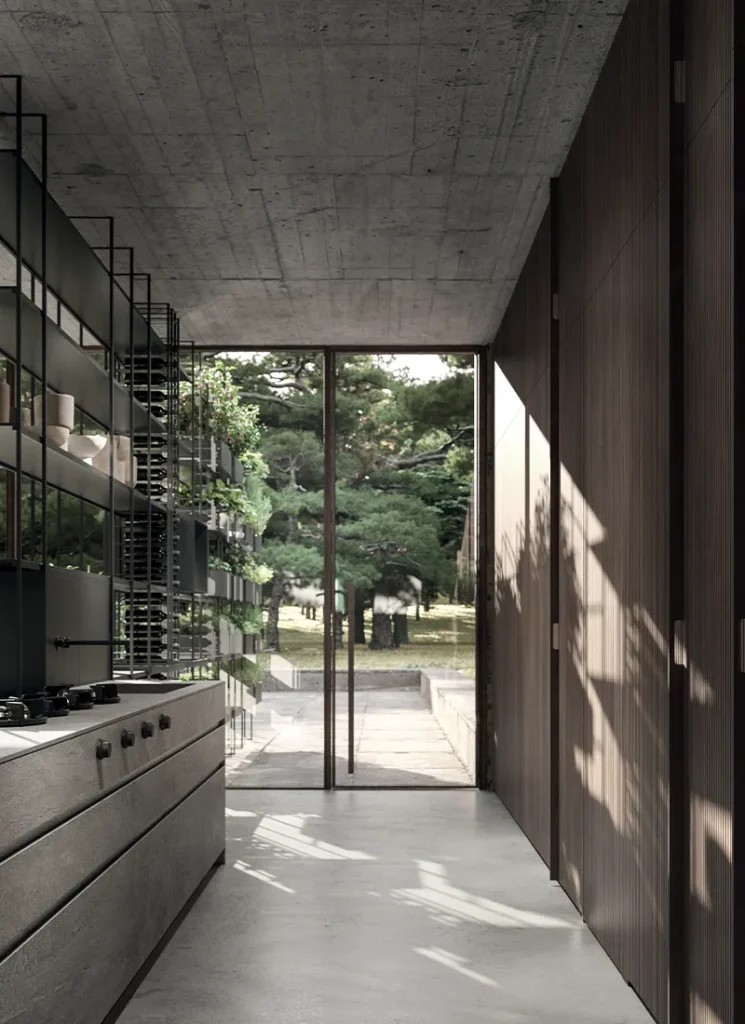 Nativia by The Cut was born with this mission in mind. To create an open environment where you can cook, have breakfast, work, study and nurture in the broadest sense by fostering exchanges among people but also among environments, from the living room and beyond, including outdoor spaces, thanks to a wireframe that is more than a simple kitchen component and turns into a vertical vegetable garden.