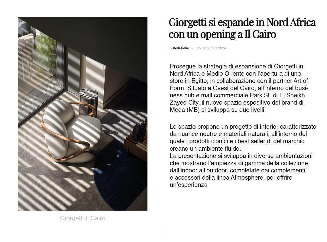 PRESSNews & PressBrowse our latest news, press releases, media coverage and archived articles. 2024 Profile 2022 Profile We Love Milano 2020 Profile 2019 Profile 2018 Profile NOVEMBER 2024HOTSPOT | GIORGETTI CAIRO SEPTEMBER 2024Giorgetti si espande in Nord Africa con un opening a Il Cairo April 2024Giorgetti magazine #4 April 2023Giorgetti Magazine #3 June 2022Giorgetti Magazine #2 September 2021Giorgetti Magazine #1 March 2023elbeit magazine JANUARY 2019Selections Cover 2019 JANUARY 2019Kitchen Hacks 2019 JANUARY 2018Selections Cover 2018 JANUARY 2018Kitchen Hacks 2018 JANUARY 2017Selections Cover 2017 JANUARY 2017Kitchen Hacks 2017 JANUARY 2016Selections cover 2016 JANUARY 2015selections cover 2015 JANUARY 2013Selections cover 2013 Previous Page1 Page2 Latest NOVEMBER 2024HOTSPOT | GIORGETTI CAIRO SEPTEMBER 2024Giorgetti si espande in Nord Africa con un opening a Il Cairo April 2024Giorgetti magazine #4 April 2023Giorgetti Magazine #3 June 2022Giorgetti Magazine #2 September 2021Giorgetti Magazine #1 March 2023elbeit magazine JANUARY 2019Selections Cover 2019 JANUARY 2019Kitchen Hacks 2019 JANUARY 2018Selections Cover 2018 JANUARY 2018Kitchen Hacks 2018 JANUARY 2017Selections Cover 2017 JANUARY 2017Kitchen Hacks 2017 JANUARY 2016Selections cover 2016 JANUARY 2015selections cover 2015 JANUARY 2013Selections cover 2013 Previous Page1 Page2 LatestSUBSCRIBE TO ART OF FORM NEWSLETTERPlease enable JavaScript in your browser to complete this form.SubmitSUBSCRIBE TO ART OF FORM NEWSLETTERPlease enable JavaScript in your browser to complete this form.Submit